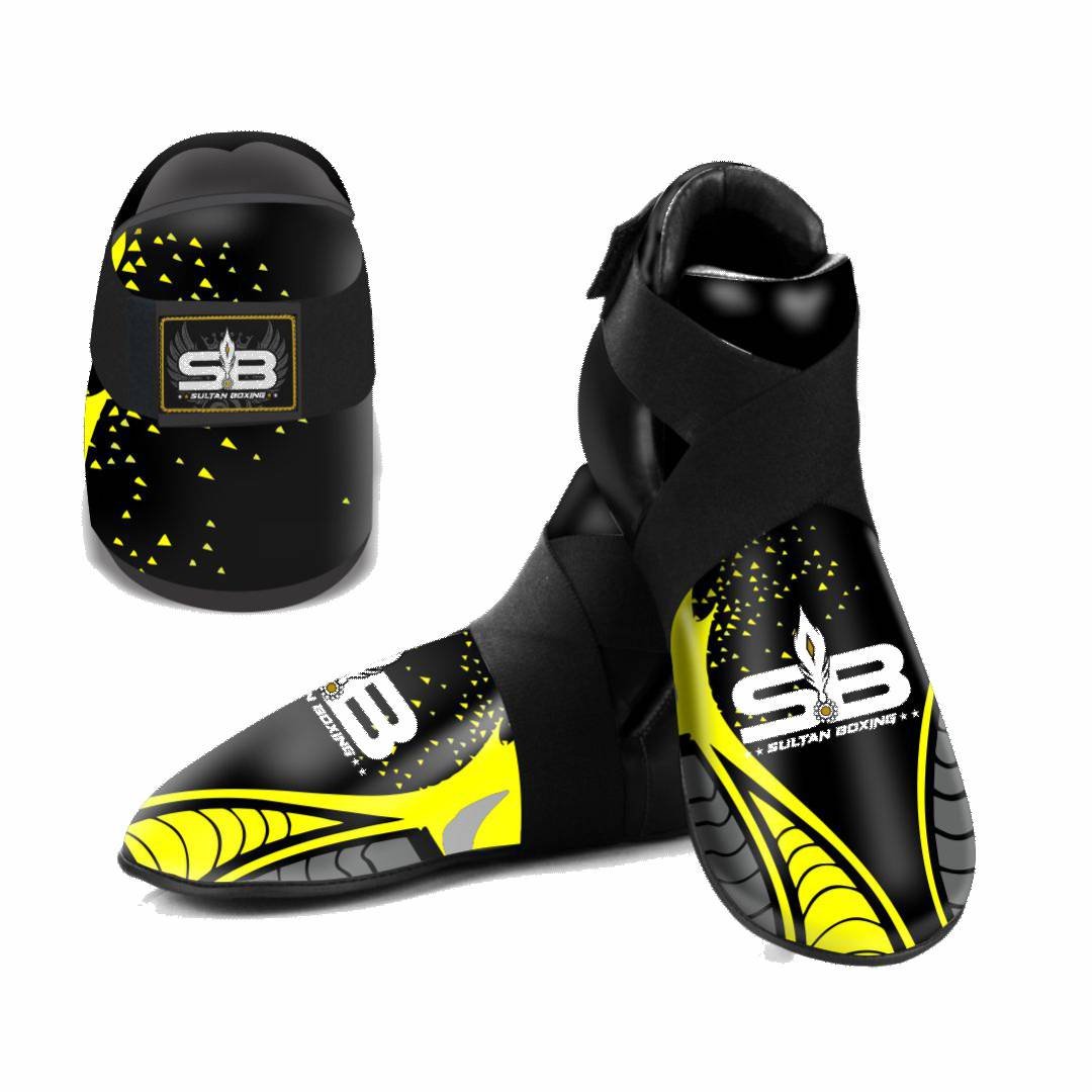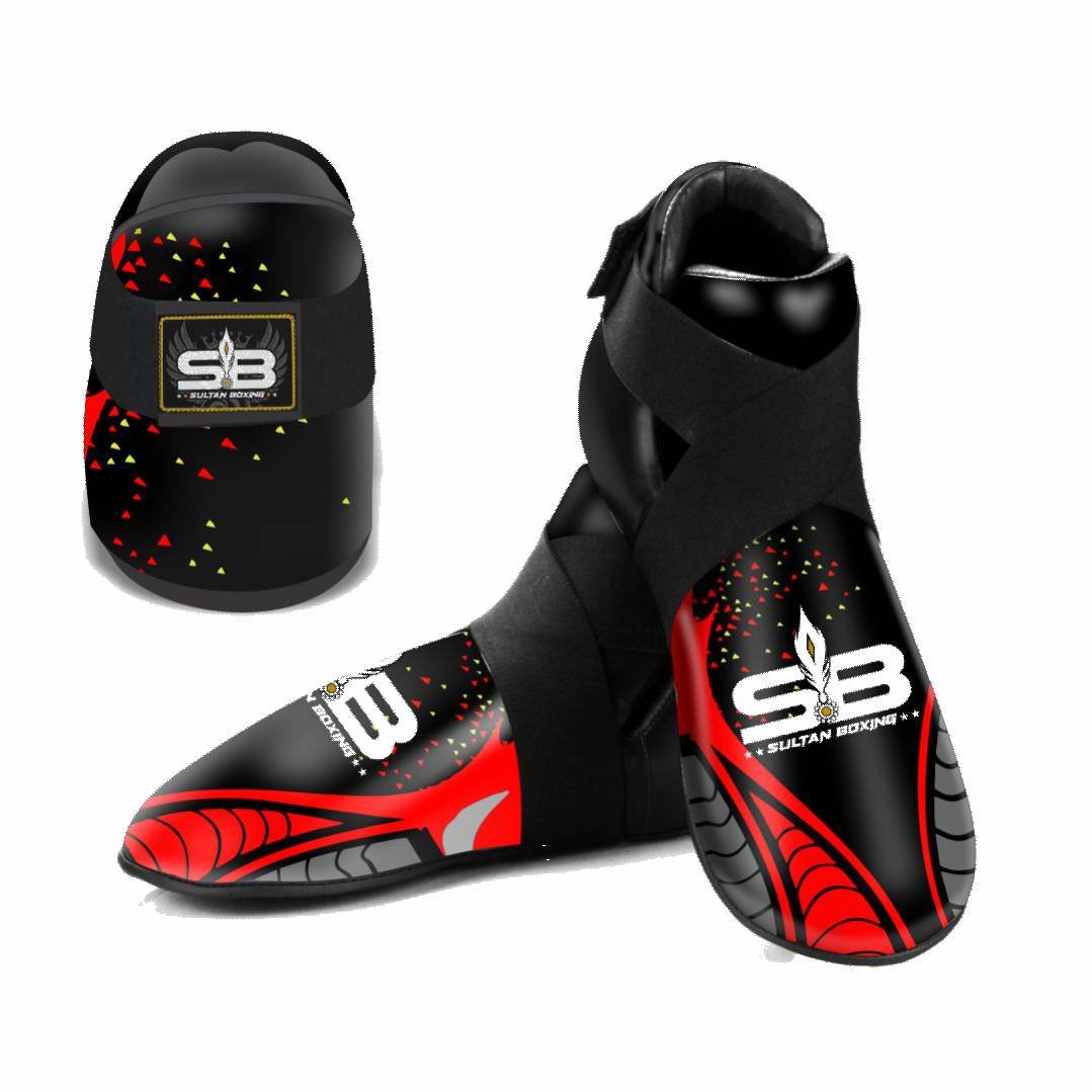 For a secure and stable fit, the foot protectors are equipped with elastic cross straps and a hook-and-loop fastening system. This combination keeps the protectors firmly in place during movement, preventing rotation or slipping while performing kicks and footwork.